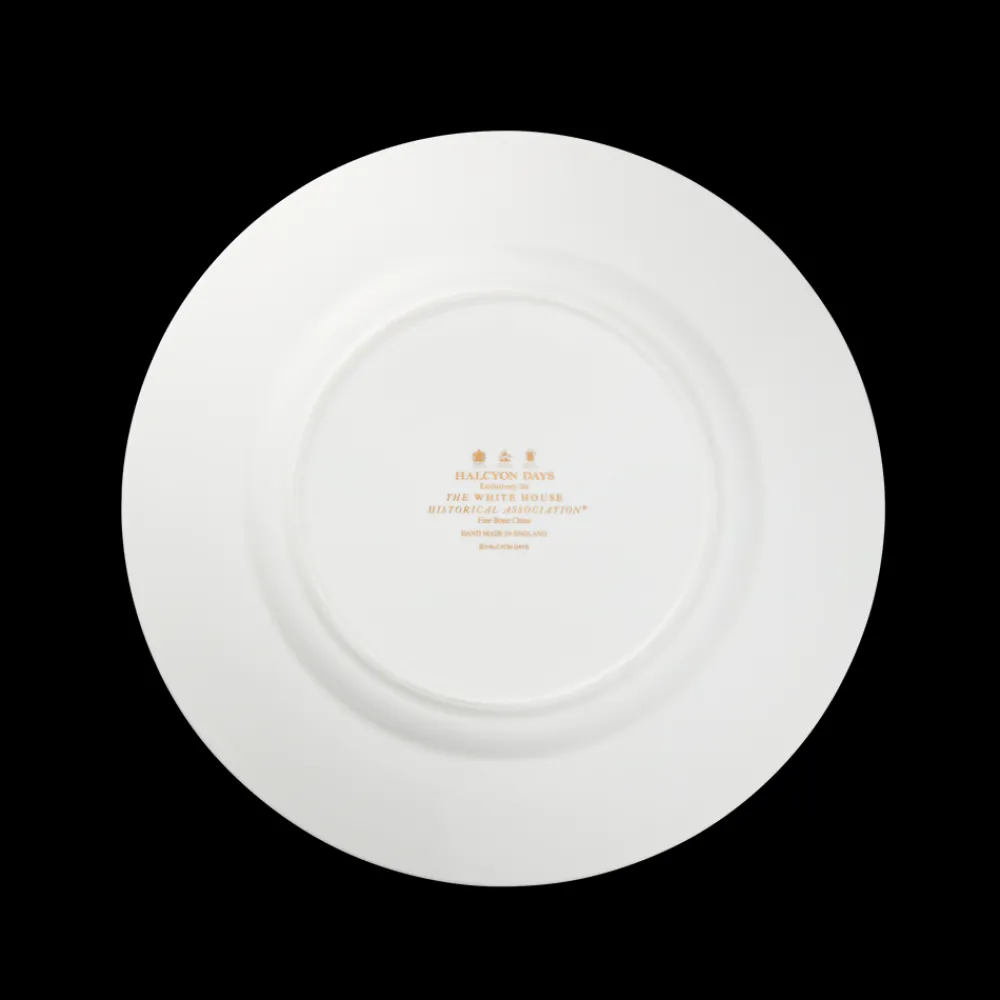 This presentation plate is exclusively made by Halcyon Days in celebration of the sixtieth anniversary of the White House Historical Association.