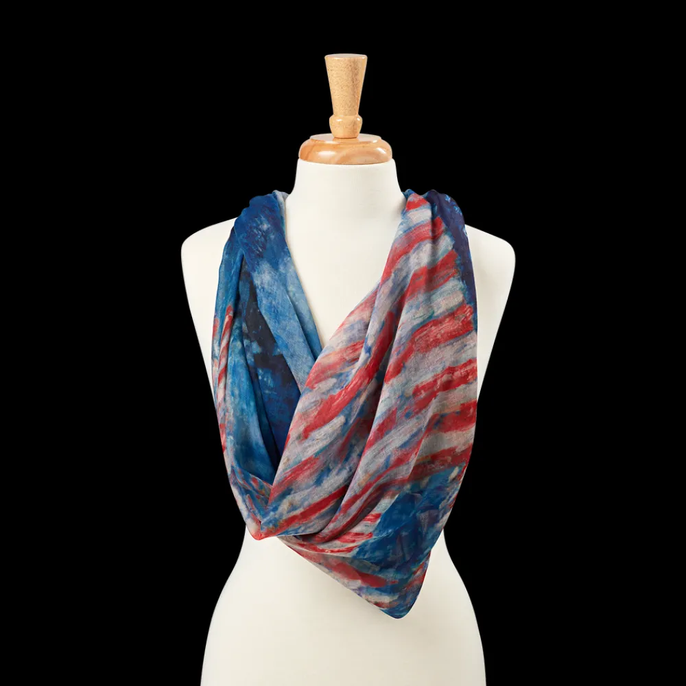 This scarf features the beautiful painting Avenue in the Rain by Childe Hassam (1917).