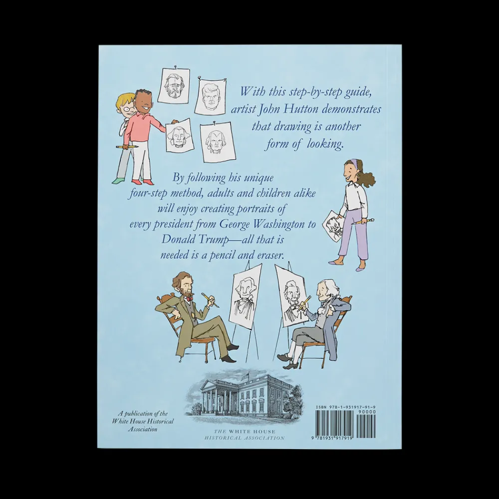 The presidents of the United States of America have always been a popular subject for American artists. Official presidential portraits line the walls of the White House, reminding all of their esteemed subjects. The first artist to have the honor of creating an official presidential portrait was Gilbert Stuart, whose famous painting of President George Washington is one of the most treasured pieces in the White House Collection. In this unique and fun new book, the award-winning illustrator John Hutton offers step-by-step lessons for aspiring artists of all ages to draw the presidents. Dr. Hutton begins by explaining that, “Anyone can learn to draw. Drawing is simply another form of looking. . . . The trick is in learning to look very carefully, and to know what to look carefully for. Drawing is translating the world into a pattern of lines and tone. With each new line drawn a shape takes form, and before you know it, you have a complete drawing!” With Hutton’s step-by-step instructions, you can try drawing each president right on the page of the book, looking to the facing page for guidance. This book is original and, as a presidential primer, quite fun. There has never been a book like it.