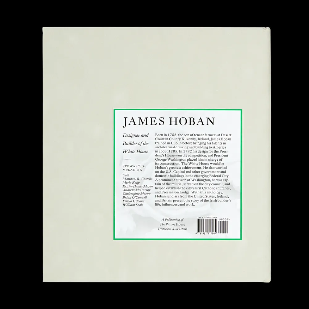 When considering the design of the President’s House yet to be built in the emerging Federal City of Washington, President George Washington asked after a young Irish builder he had learned of while visiting in Charleston, South Carolina. Soon James Hoban appeared in Washington’s Philadelphia office with his credentials. By 1792, Hoban was at work on the building site, having won the competition for the design of the President’s House. Washington had placed him in charge of the entire project, with all carpentry, stonemasonry, and brickwork under his supervision. The resulting structure, accomplished in time for President John Adams to take residence in November 1800, fulfilled Washington’s vision and is today one of the most recognizable landmarks in the world. Yet of the millions of people who know the White House are likely to find Hoban’s work more memorable than his name. With this anthology, the world’s most knowledgeable scholars on James Hoban introduce us to him, presenting the story of his life, influences, and work. The essays are followed by an illustrated catalog of nearly 100 images of historic Dublin, Irish Country Houses, the White House, and sites known to James Hoban in America. This is the second book in a series on the design and construction of the White House published but the White House Historical Association; it follows A White House of Stone: The First Ideal in American Architecture, which focused on the work of the Scottish stonemasons. The third book in the series will focus on the enslaved people who built the White House.