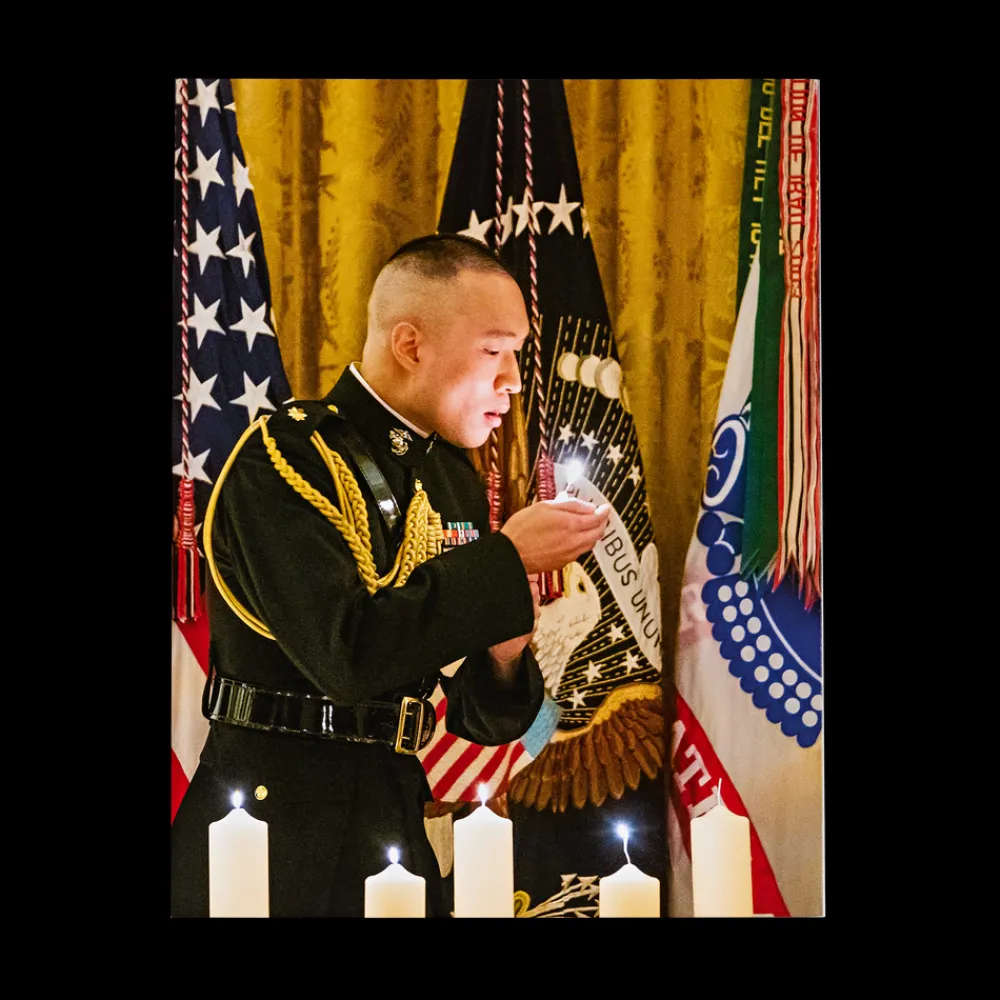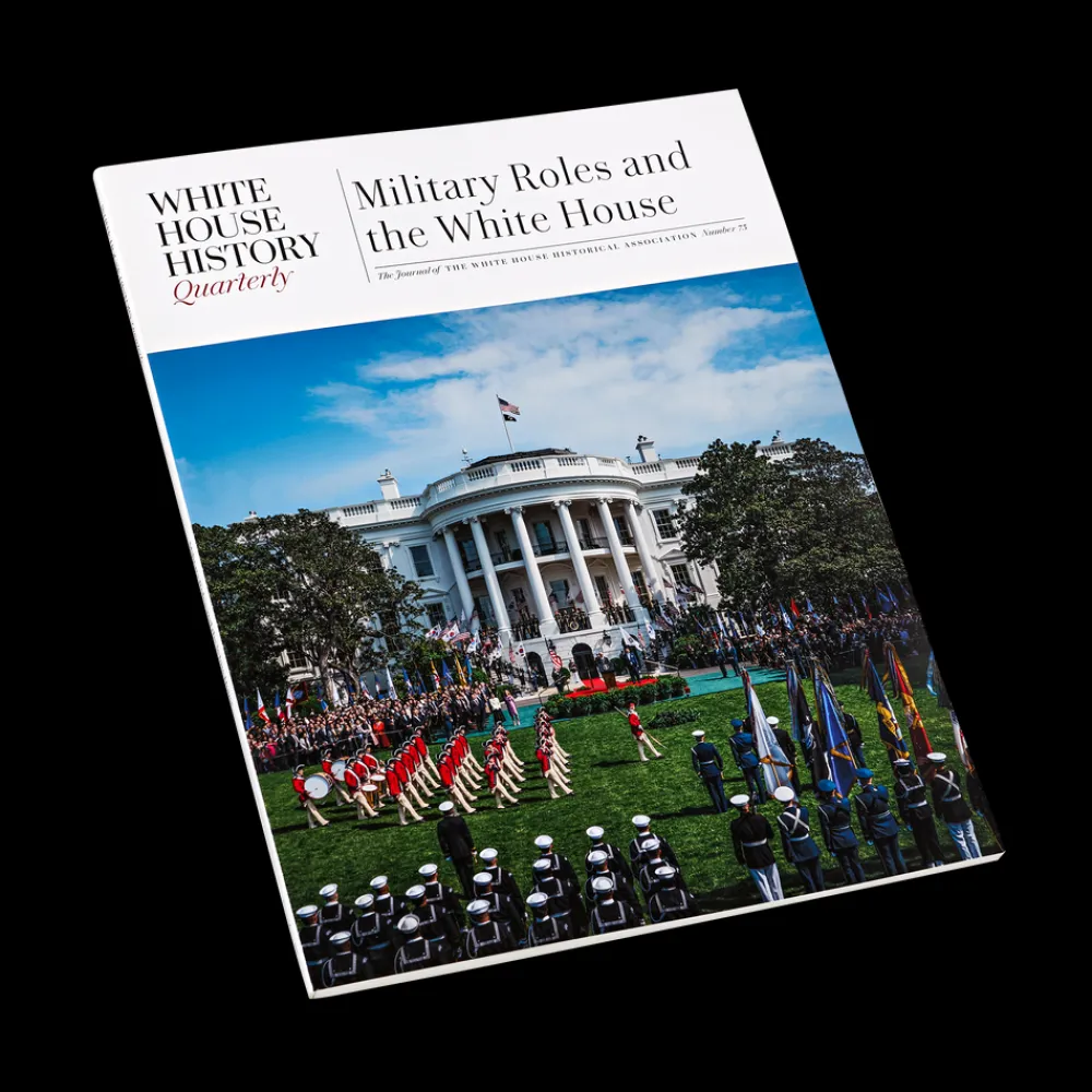 “WELCOME TO THE WHITE HOUSE,” the warm greeting delivered by military social aides to the president’s invited guests upon their arrival at the East Wing doors, represents just one of many time-honored traditions that make a White House visit an extraordinary experience. From performing traditional American music to welcoming a visiting head of state, to showing guests their seats in the East Room on a special occasion, to managing a State Dinner receiving line, to serving lunch to the president in the Oval Office Dining Room, every branch of the military plays a role in facilitating ceremonial and everyday White House routines. With this issue of White House History Quarterly, released on Memorial Day 2024, we look at some of those military roles, long steeped in tradition. We also consider the influence of military life on the work of three first ladies, a president’s relationship with his generals as a war unfolds, and Civil War–era letters that reveal one soldier’s own experience in the President’s Neighborhood.