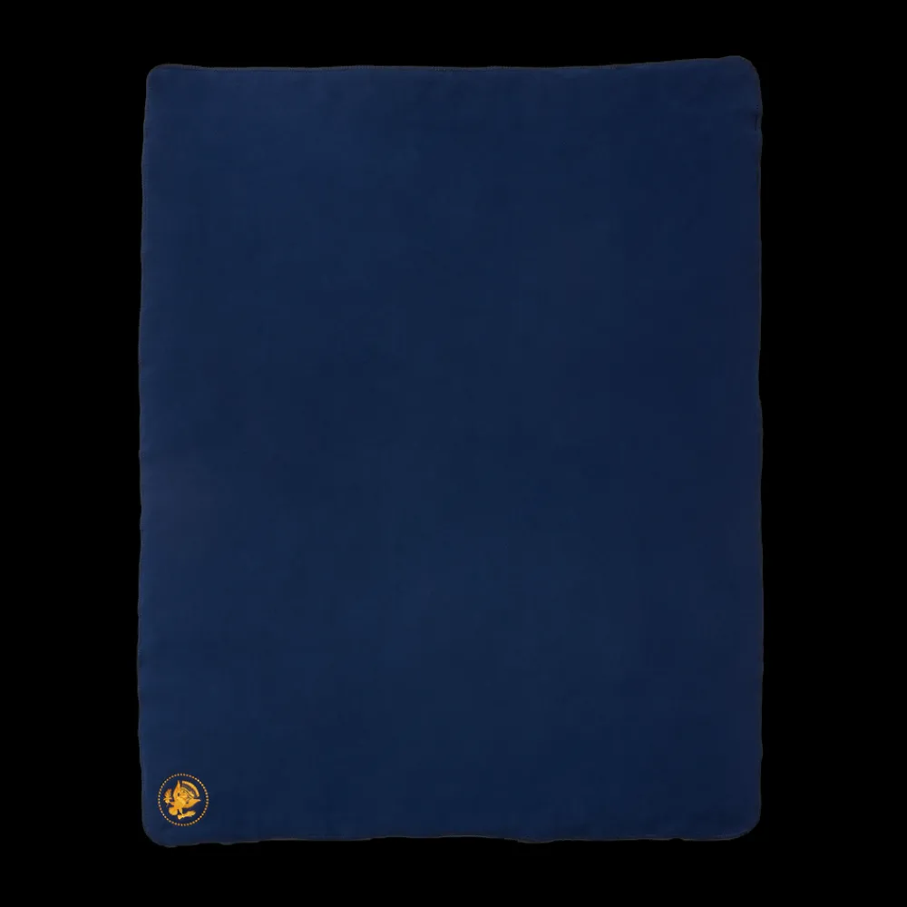 On October 25, 1945 President Harry S. Truman issued Executive Order 9646, which officially defined the Presidential Coat of Arms and Seal for the first time. An eagle’s head, which originally faced right toward a bundle of thirteen arrows held in its talons, was turned to face left toward the olive branch it held, symbolizing peace. Since 1945, the only changes made to the seal were the additions of the 49th and 50th stars. This soft navy fleece blanket is embroidered with the Truman Seal in gold.