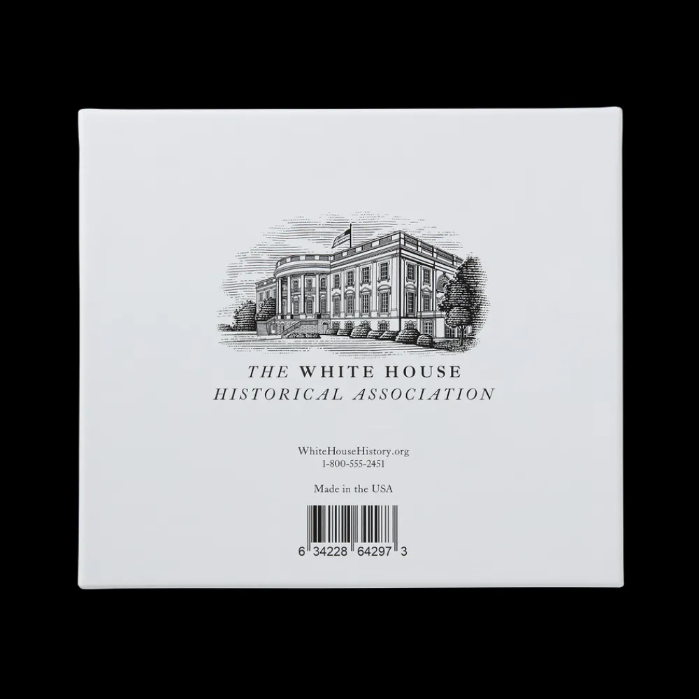 A perfect addition to any holiday tree, this American-made holiday ornament illustrates this decades-long tradition, complete with delicate icing, red and white striped candies, gumdrops, and candy canes. If you look closely, you can even see little gingerbread children frolicking in front of the North Portico. Included with this beautifully gift-boxed keepsake is a gingerbread scented insert, booklet, and recipe card featuring a gingerbread recipe from First Lady Pat Nixon’s time at the White House.