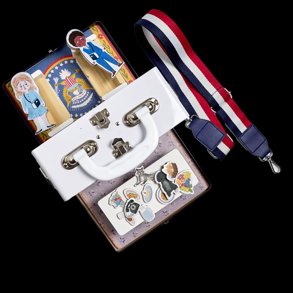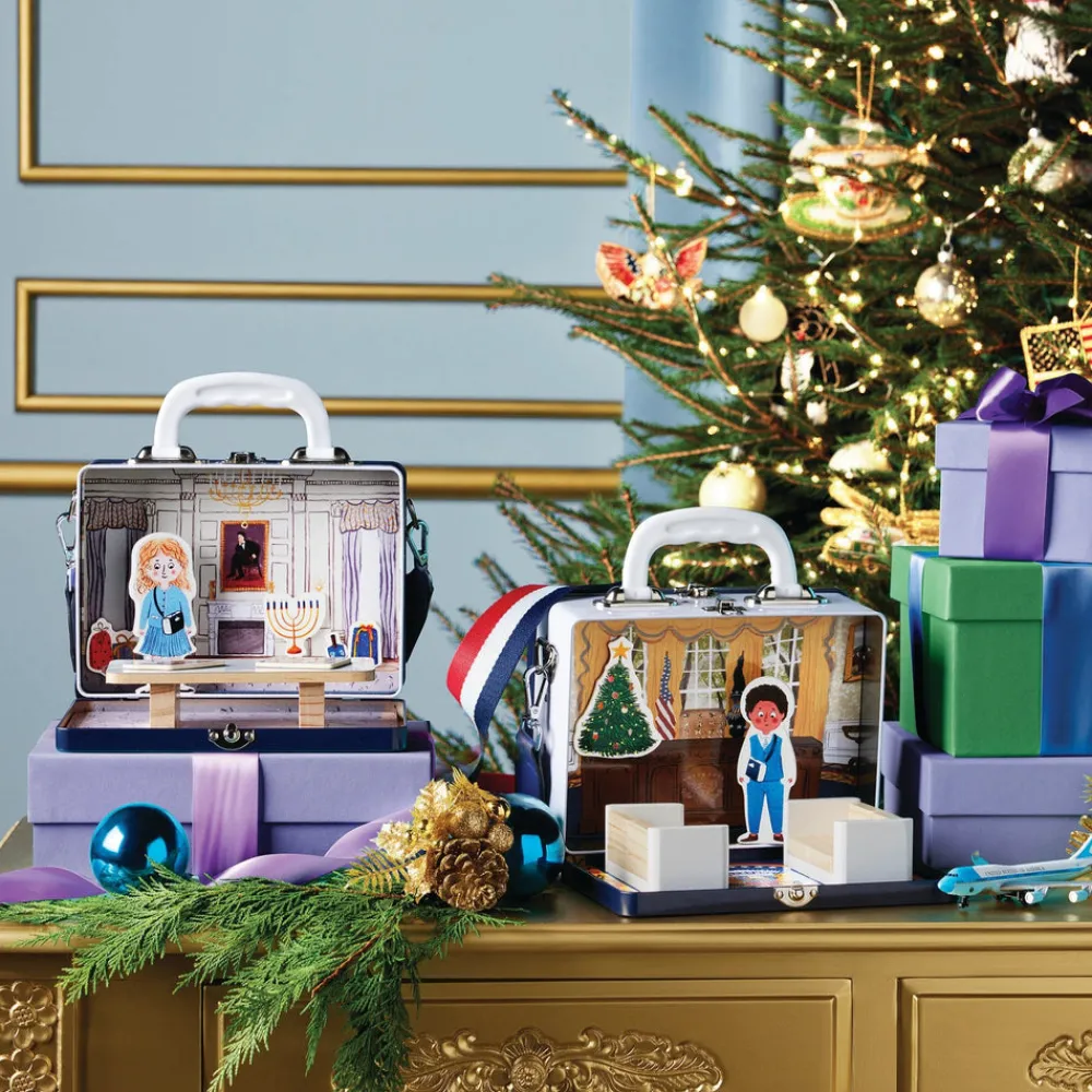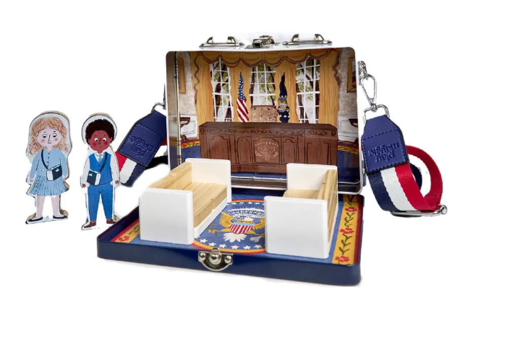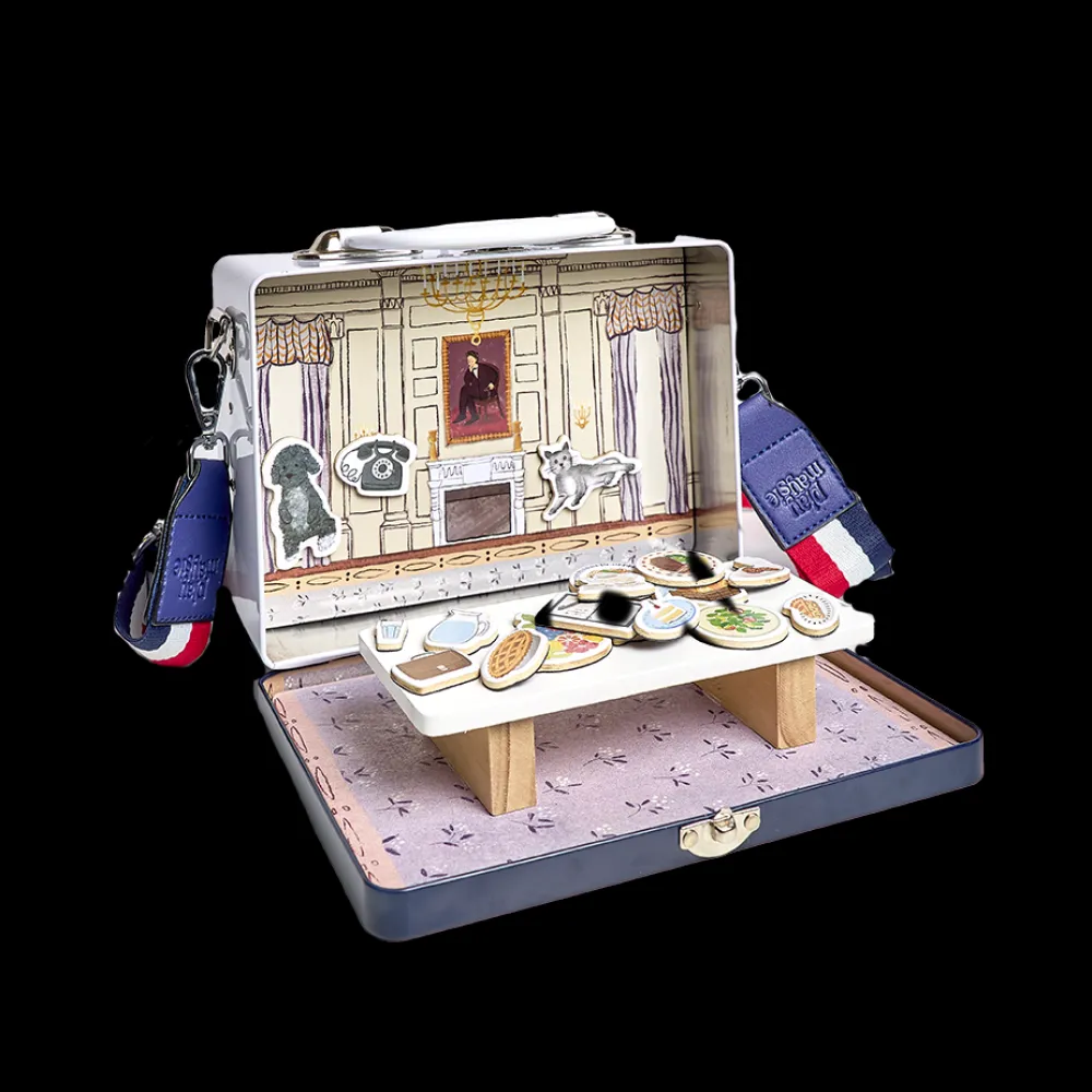 Always remember the wonder of visiting the White House with this exclusive play set from Play Maysie. Created to commemorate the opening of The People’s House: A White House Experience, our first fully curated and digital museum experience, The Play Maysie White House Play Case is an instant classic for all ages. From kids that love to play on the go, to nostalgic adults that love the retro look of vintage lunchbox toys, this play case is sure to bring joy to the whole family. This play case opens on both sides to reveal two of the most important rooms in the White House.