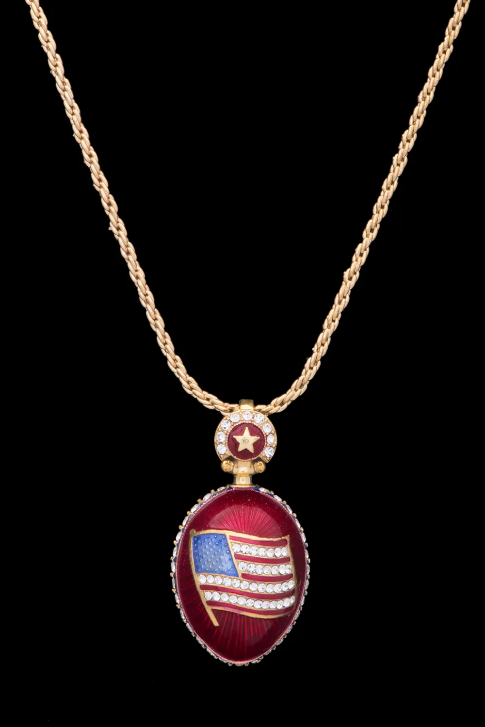 This patriotic egg pendant is carefully handcrafted by master jewelers.