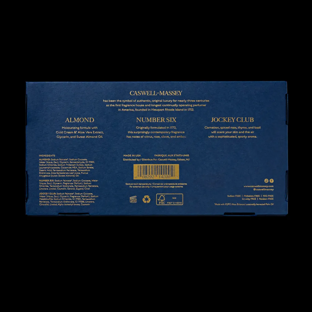 This Presidential Soap Collection includes a three famed fragrance bath soaps from Caswell-Massey.