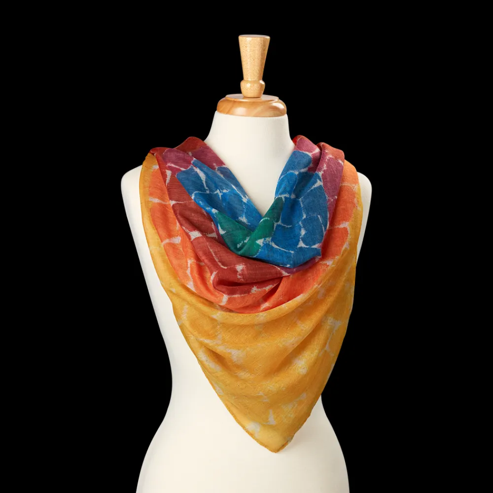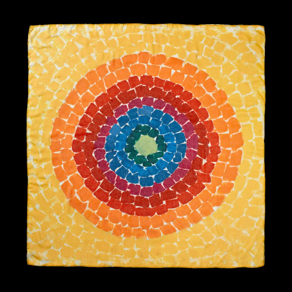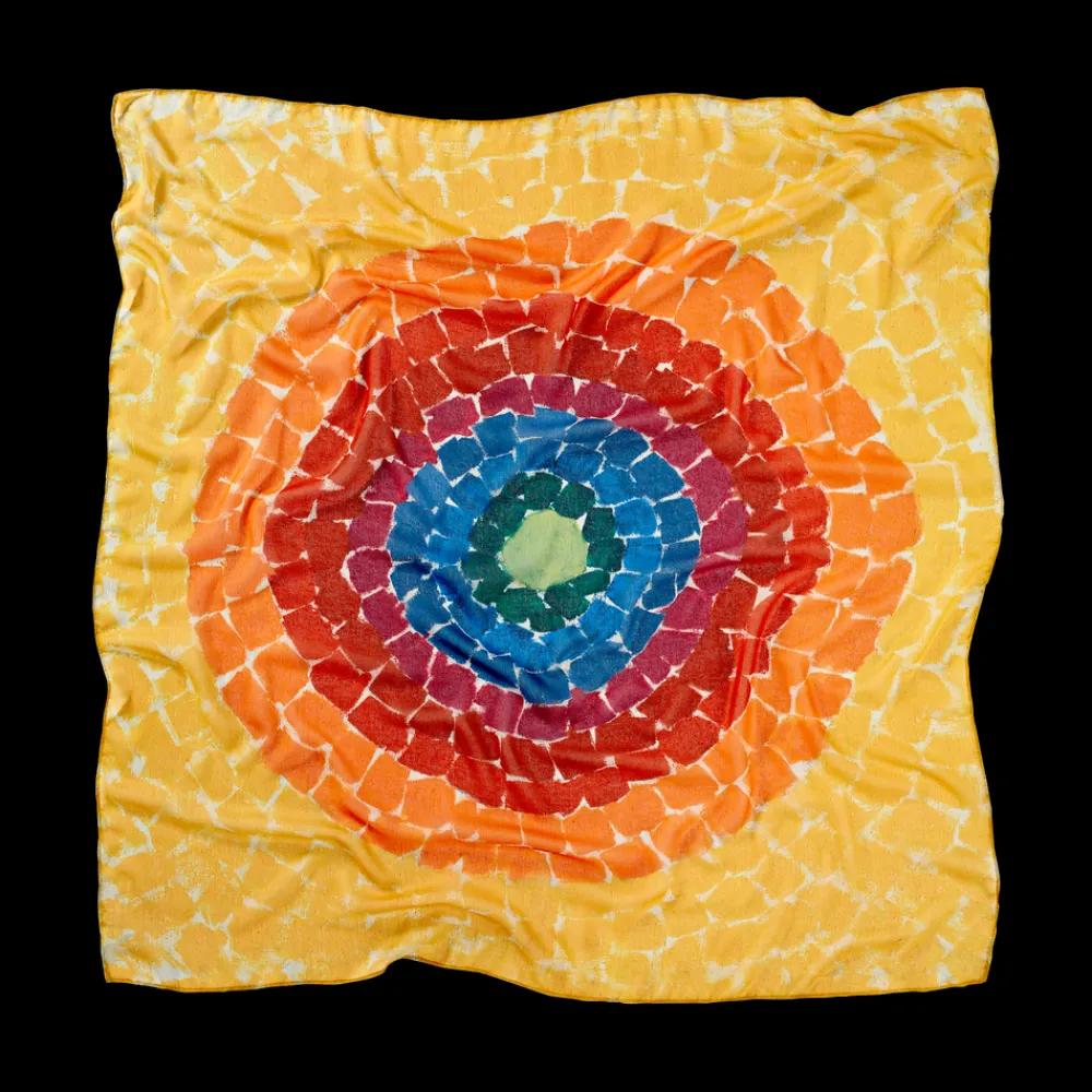 Spruce up any outfit with this vibrant scarf inspired by the iconic Resurrection painting by Alma Thomas. The vibrant colors of Resurrection, created in 1966 by Alma Thomas, recall the techniques used in Pointillism and Abstract Expressionism. A notable member of the Washington Color School, which was known for its Color Field paintings, Thomas was an educator and artist in Washington, D.C., for most of her career. The first painting in the White House Collection by an African American woman, Resurrection was a gift of the White House Historical Association in 2014 and first displayed in the Family Dining Room during Black History Month in 2015.