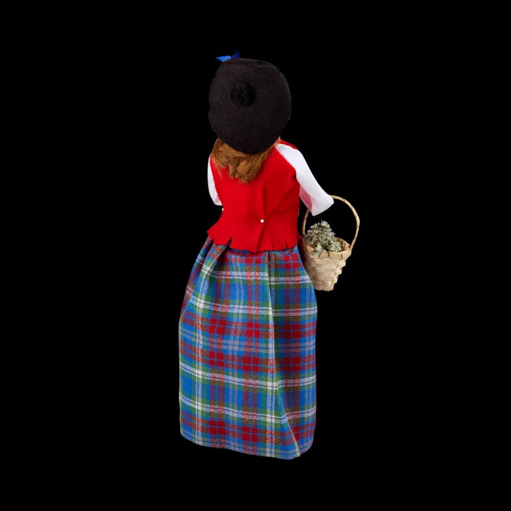 This White House Caroler is dressed in the official tartan of the White House Historical Association. The tartan design is a tribute to the Scottish stonemasons who traveled to Washington in 1794 to embellish the sandstone selected by George Washington for the White House. Thirty-four American presidents, from James Monroe to Donald Trump, have claimed Scottish heritage.