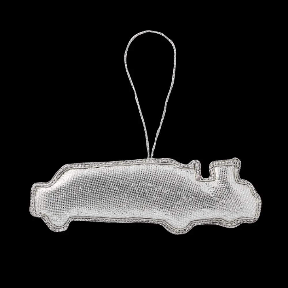 “The Beast” felt ornament depicts the famous presidential limousine in a detailed silver and black design and is embellished with American and presidential flags.