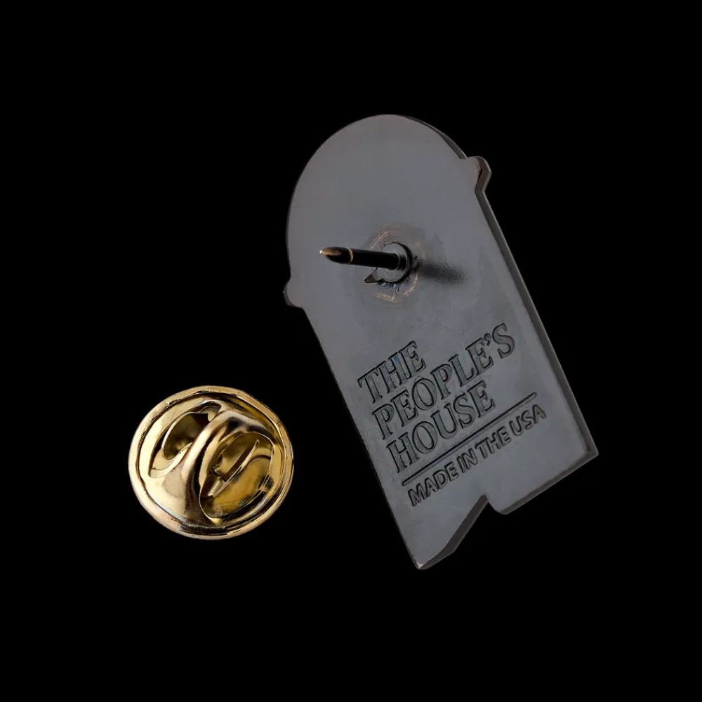 Nickel-plated, enamel lapel pin of The People’s House logo. Each pin is embossed with “Made in the USA” on the reverse.