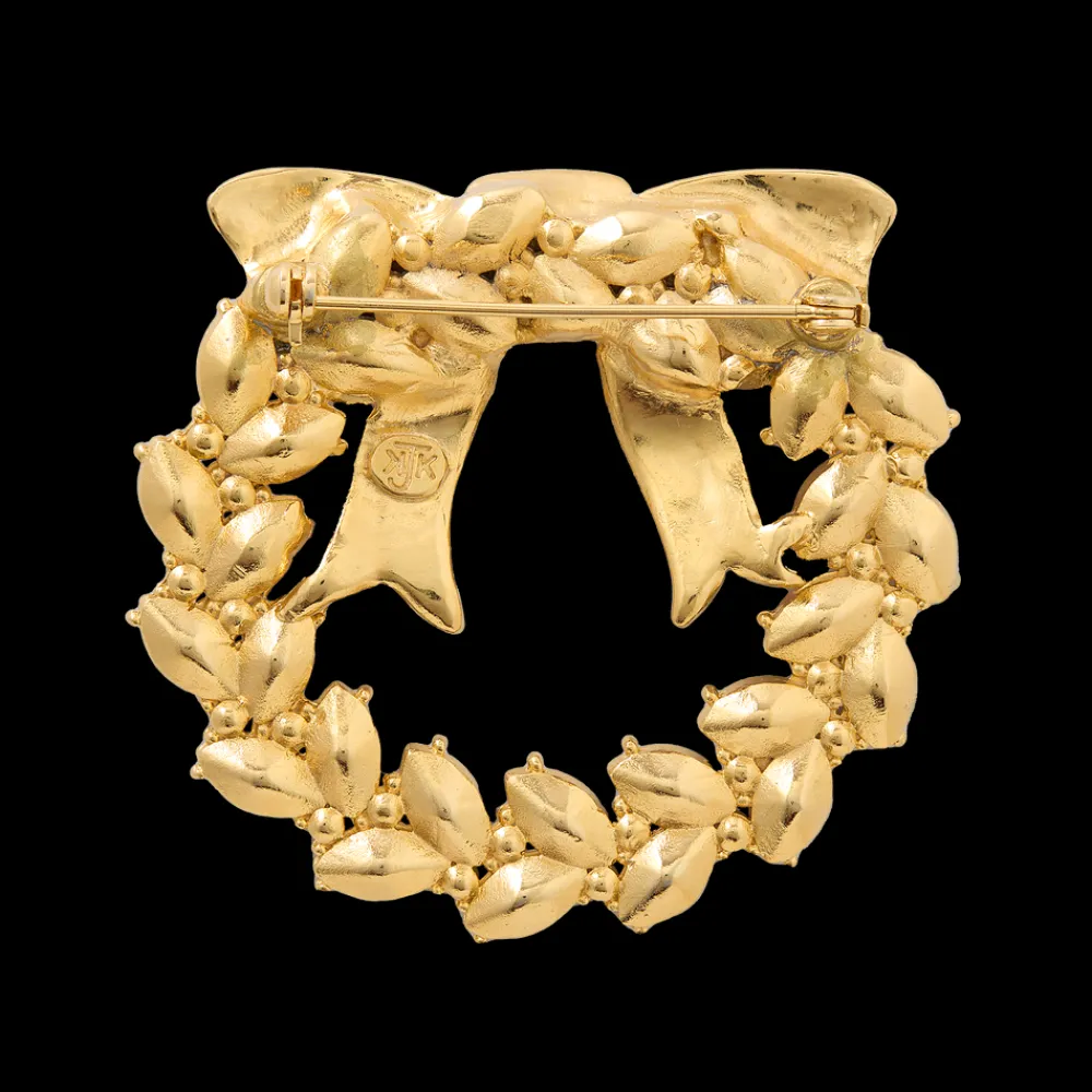 A holiday wreath cast in pewter and gold-plated, this festive brooch is inspired by traditional White House Christmas decorations displayed on the windows and doors of the Executive Mansion.