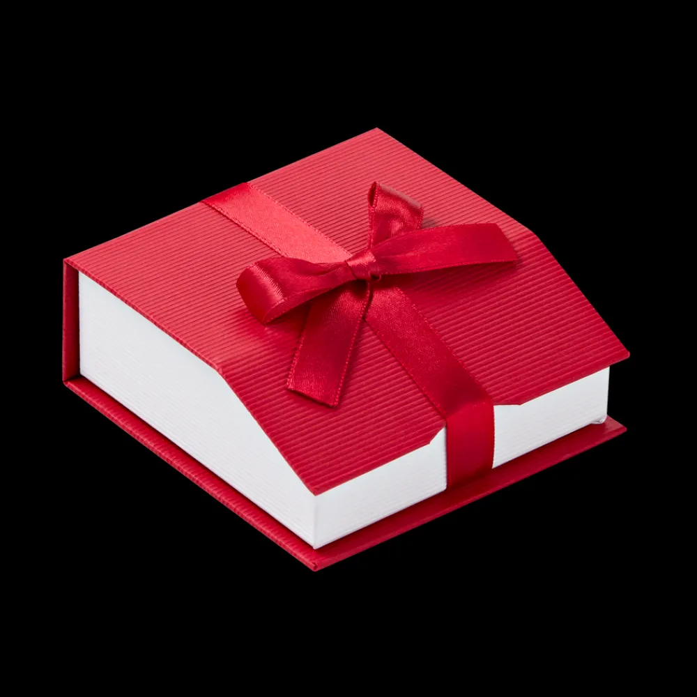 Gold-plated pewter, faceted glass crystals, enameled red bow
