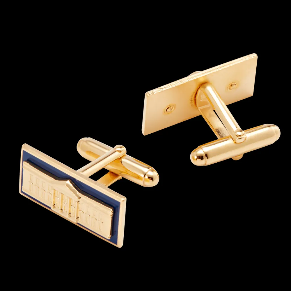 Made In The USABrass plated with gold; enamelSKU 001284These brass plated with gold cuff links feature the North Portico…