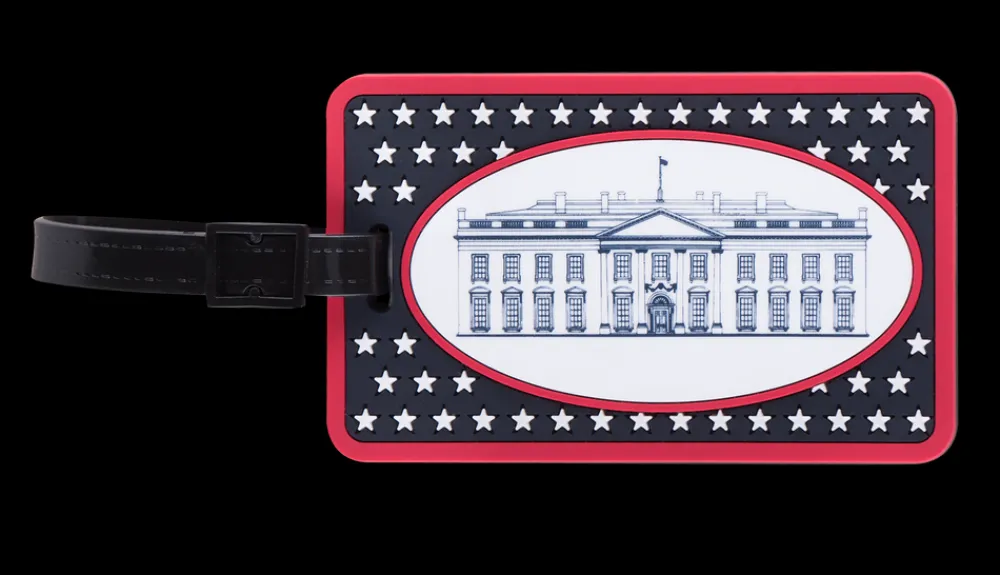This durable luggage tag is made of PVC and depicts the North Portico surrounded by 50 stars.
