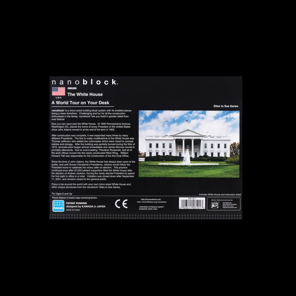 At 1600 Pennsylvania Avenue, Washington, D.C., stands the home of every President of the United States since John Adams moved in at the end of his term in 1800. After construction was complete, it was expanded many times by many different presidents. Build your own White House with these nanoblocks – the micro-sized building blocks. Contains 890 pieces.