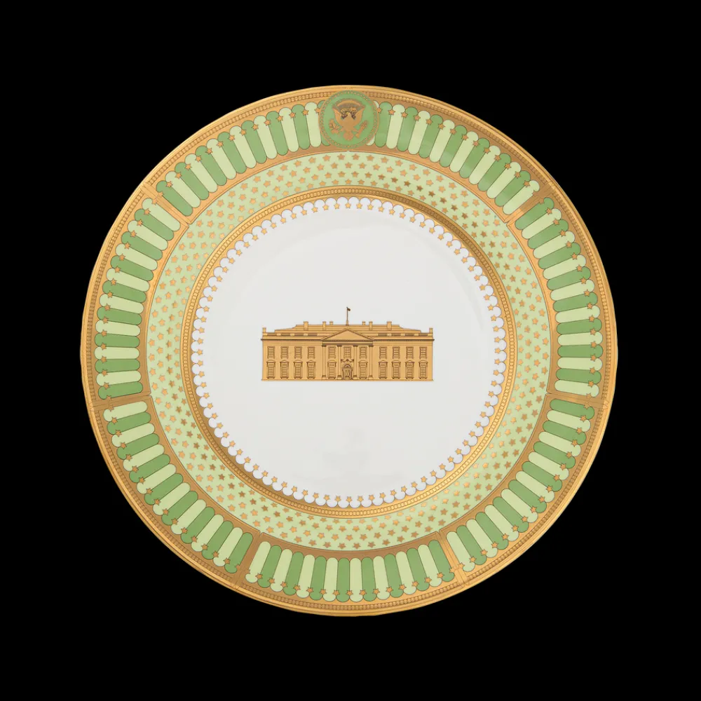 This presentation plate is exclusively made by Halcyon Days in celebration of the sixtieth anniversary of the White House Historical Association.