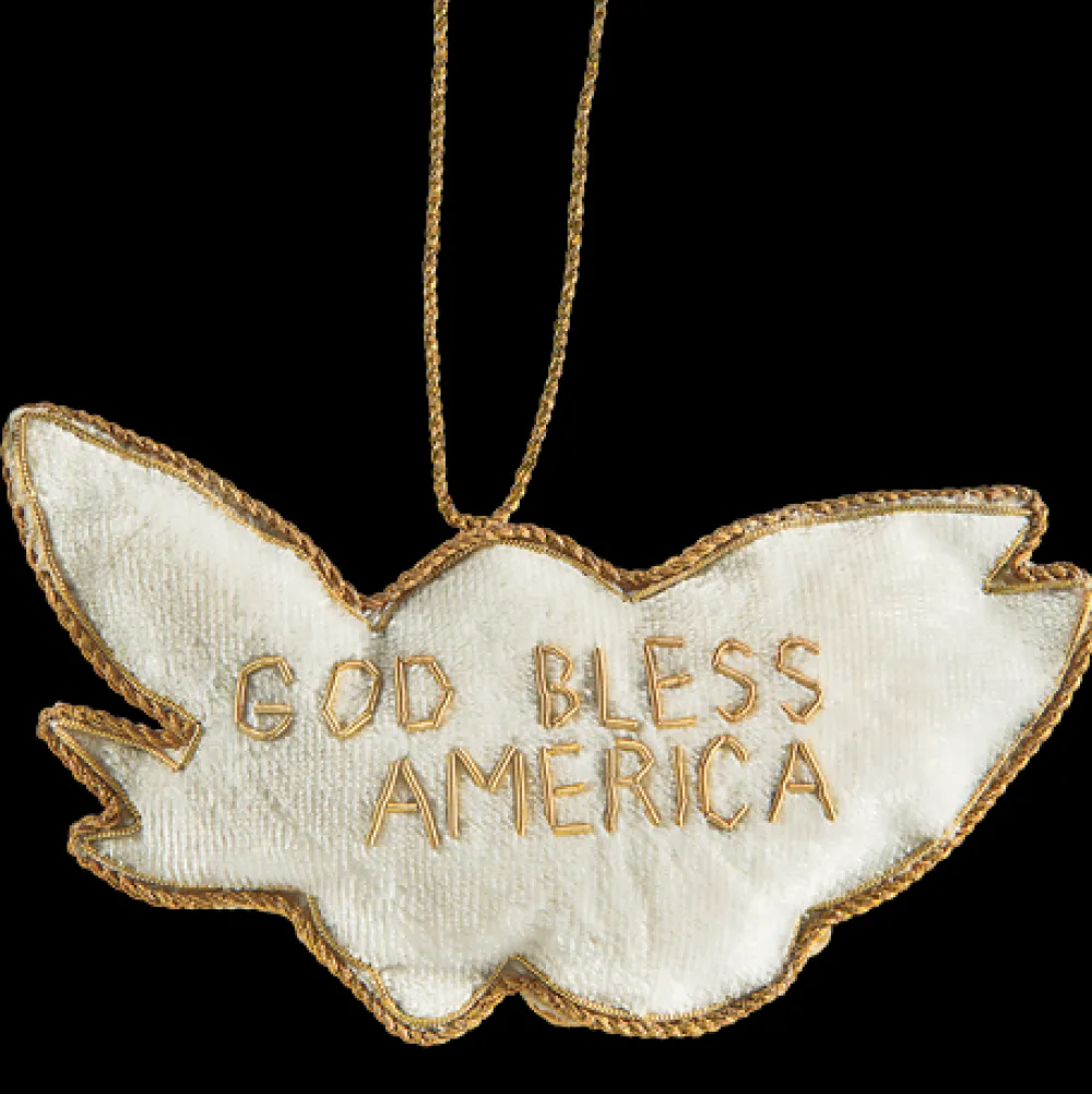 This patriotic American bald eagle ornament is handmade with felt and embellished with embroidery and beading.