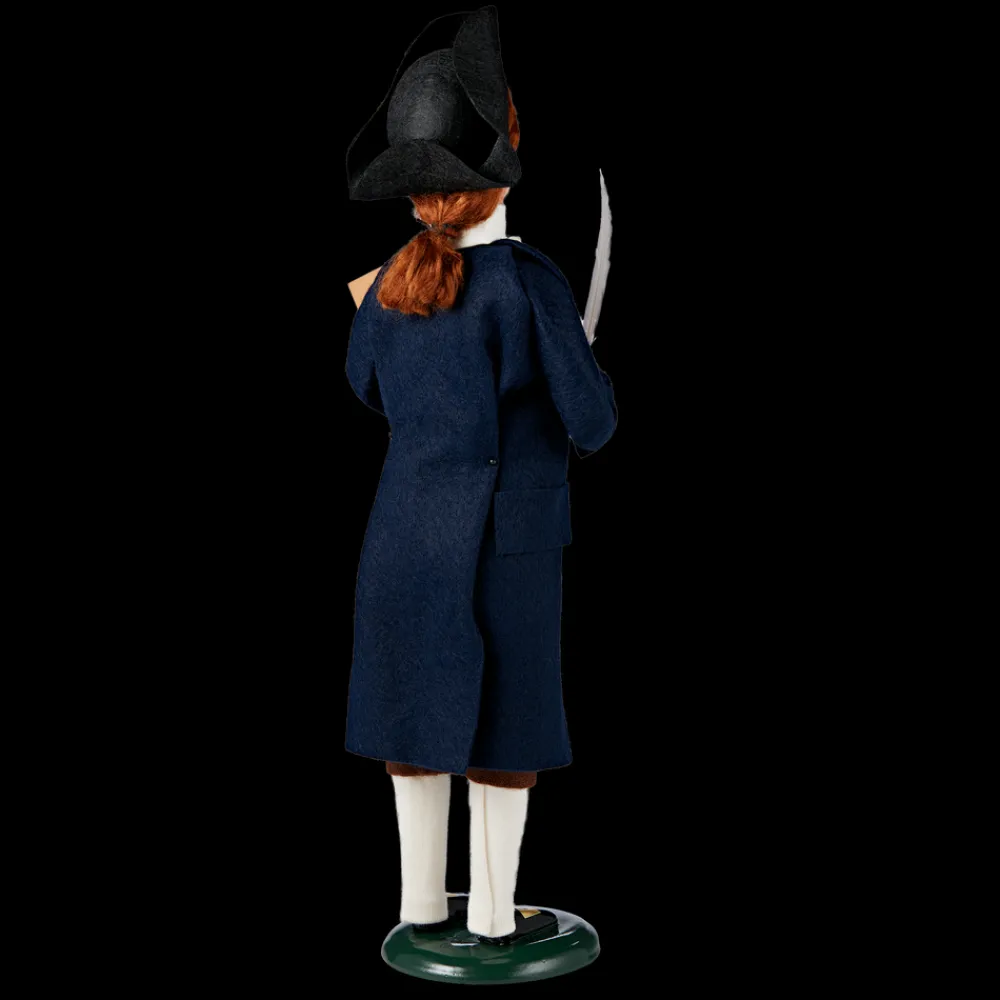 Caroling Thomas Jefferson holds a book and quill, highlighting our 3rd president’s scholarly endeavors.