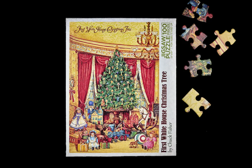 Made In The USACardboard Size Box: 10″” H x 8 1/8″W x 2 3/8″DFinished size 13″ x 19″Depicting Christmastime in President…