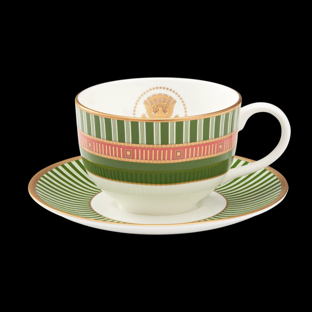 Fine Bone China and Gilding Size Saucer: 6¾″ ; Cup 4″ x 2Inspired by the room that traditionally served as a parlo…