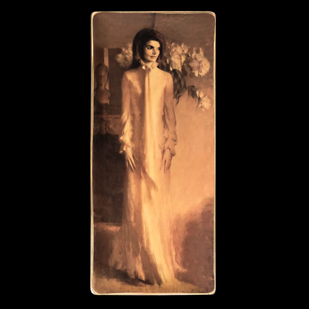 This tray honors Jacqueline Kennedy, First Lady of the United States from 1961 – 1963.