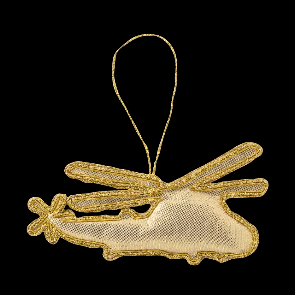 This unique felt ornament features Marine One, the presidential helicopter. Its detailed design includes the American flag and the “United States of America” stitched in gold metallic thread.