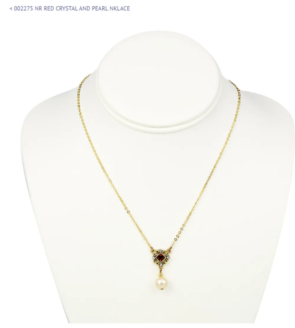 This pendant necklace was inspired by our best selling earrings from the Nancy Reagan jewelry collection. This necklace features genuine pearl accented with delicate red crystal, and is the perfect piece to elevate any ensemble. Necklace ships in branded gift box.