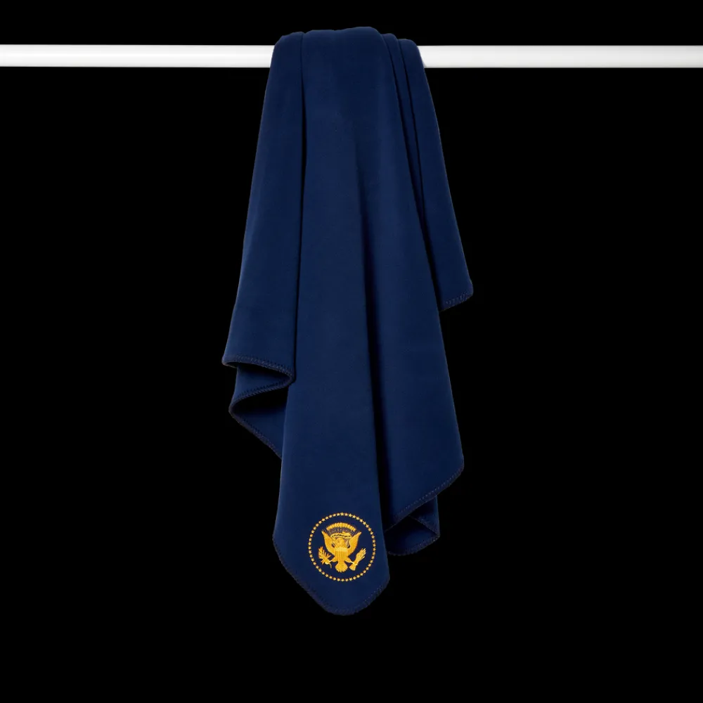 On October 25, 1945 President Harry S. Truman issued Executive Order 9646, which officially defined the Presidential Coat of Arms and Seal for the first time. An eagle’s head, which originally faced right toward a bundle of thirteen arrows held in its talons, was turned to face left toward the olive branch it held, symbolizing peace. Since 1945, the only changes made to the seal were the additions of the 49th and 50th stars. This soft navy fleece blanket is embroidered with the Truman Seal in gold.