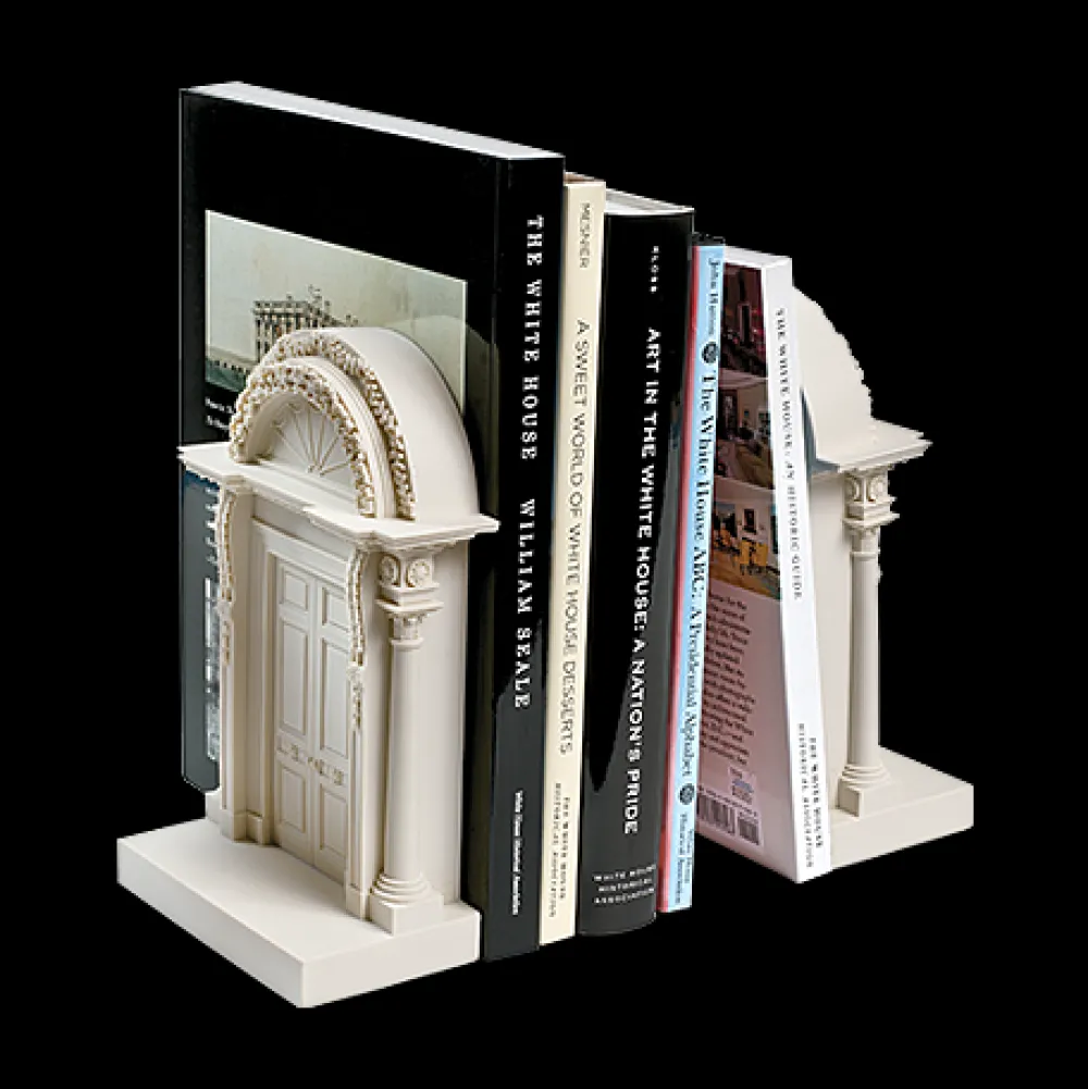These bookends depict in exquisite detail the North Portico doorway leading to the Entrance Hall of the White House.