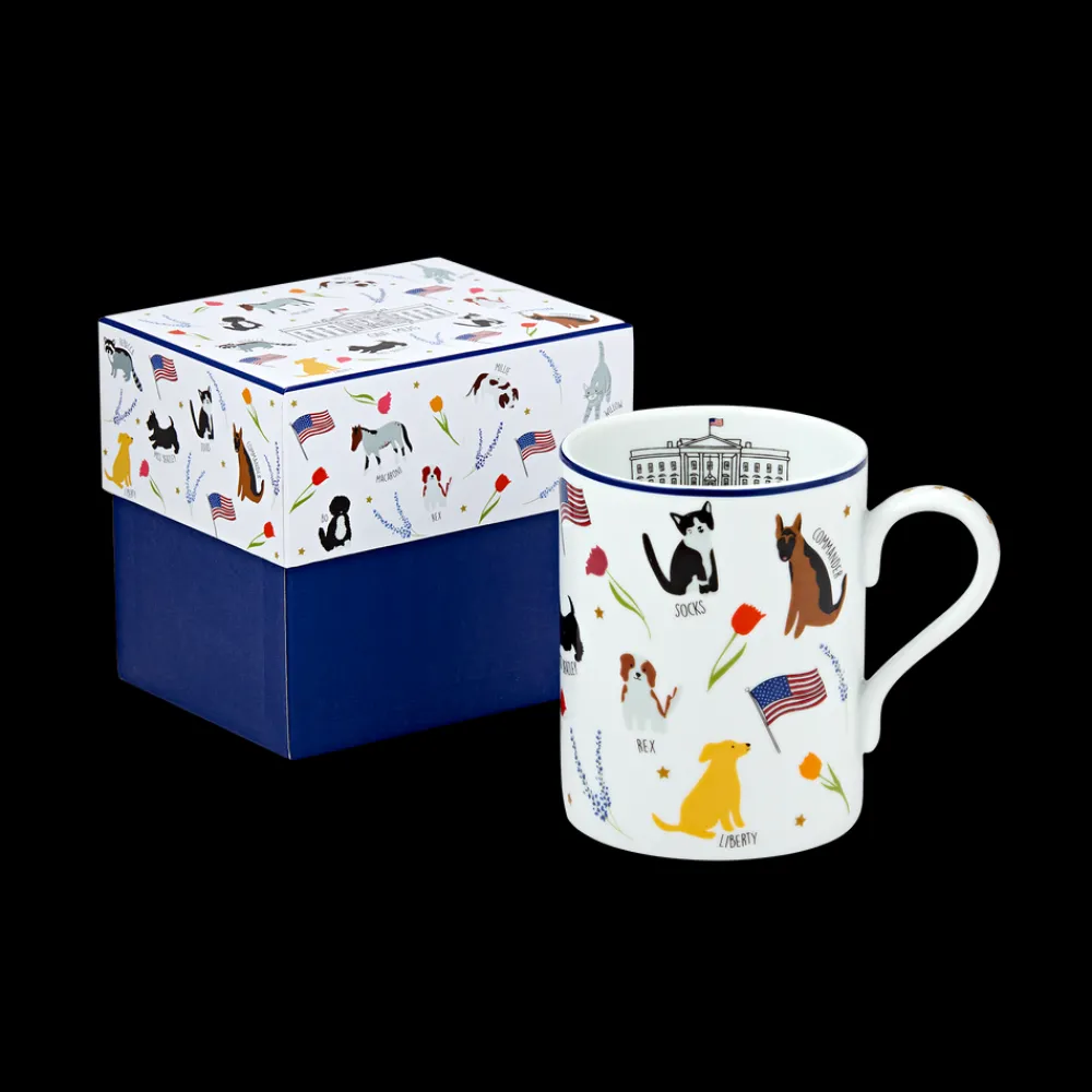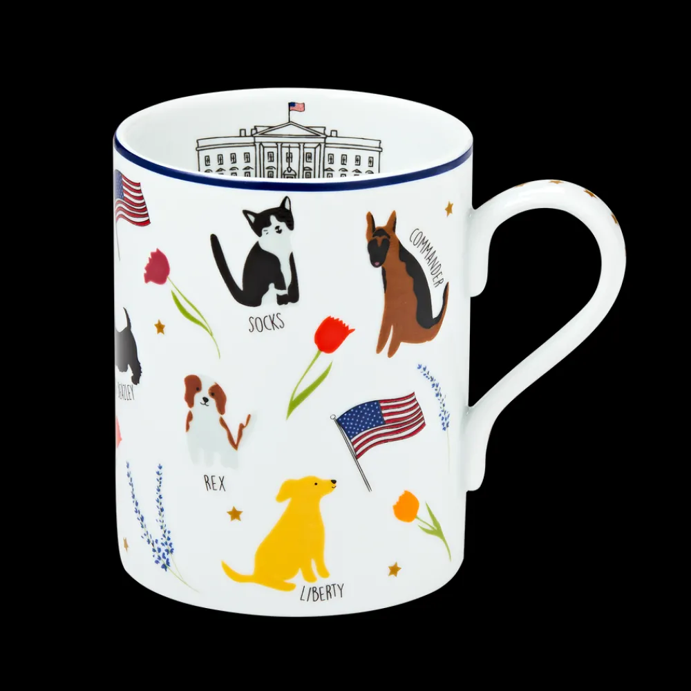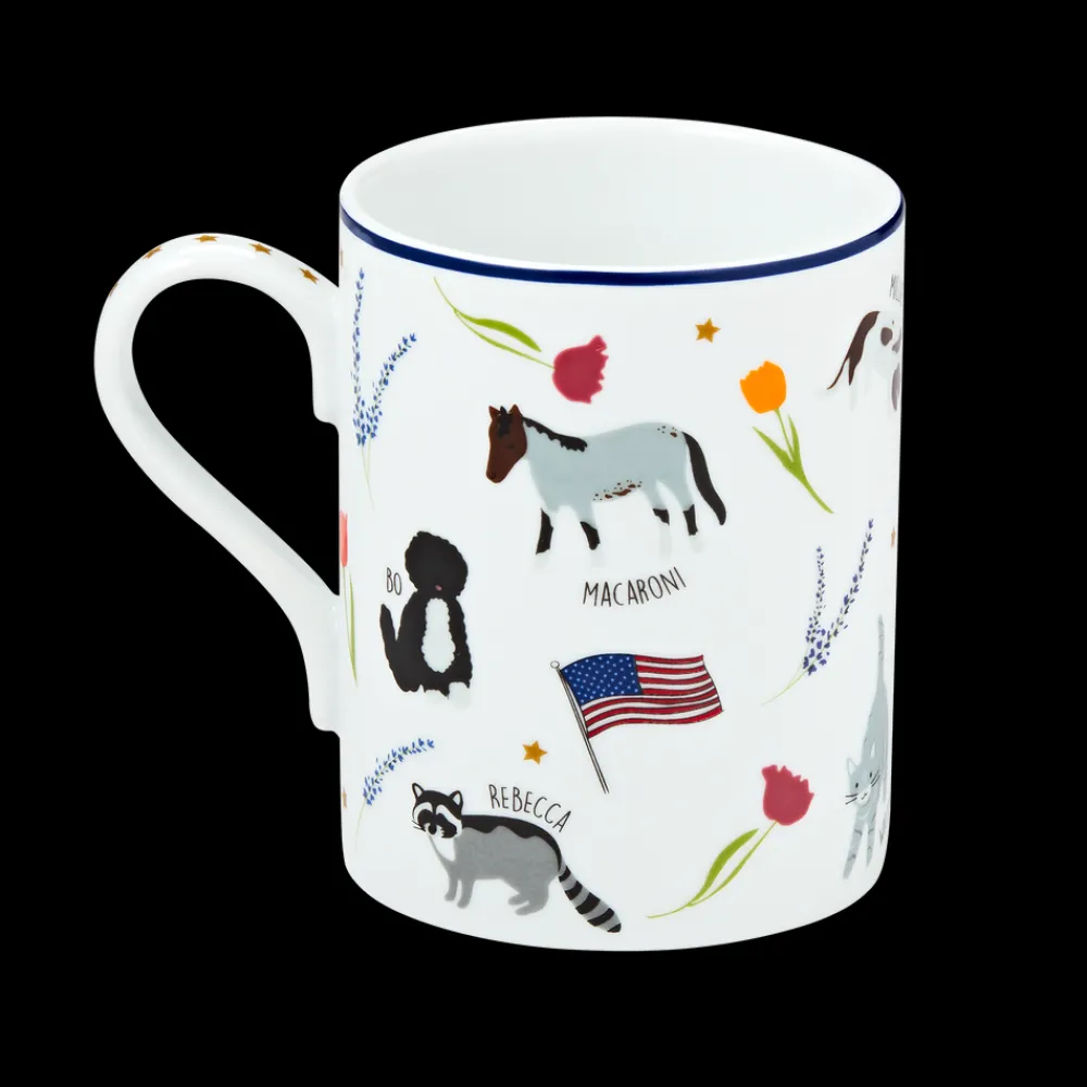 From ponies and puppies to cats and mice, first families have welcomed many different pets into the White House. Our sturdy ceramic mug features whimsical illustrations of many of these pets, including Macaroni, Caroline Kennedy’s pet pony; Socks, a stray cat adopted by Chelsea Clinton; and Millie, President and Mrs. George H.W. Bush’s English Springer Spaniel.