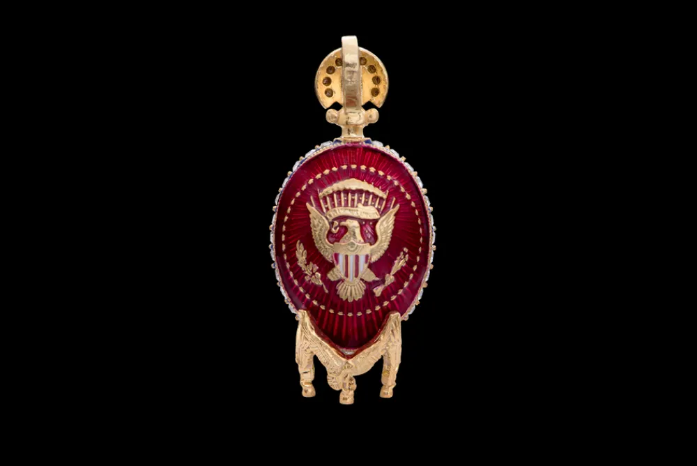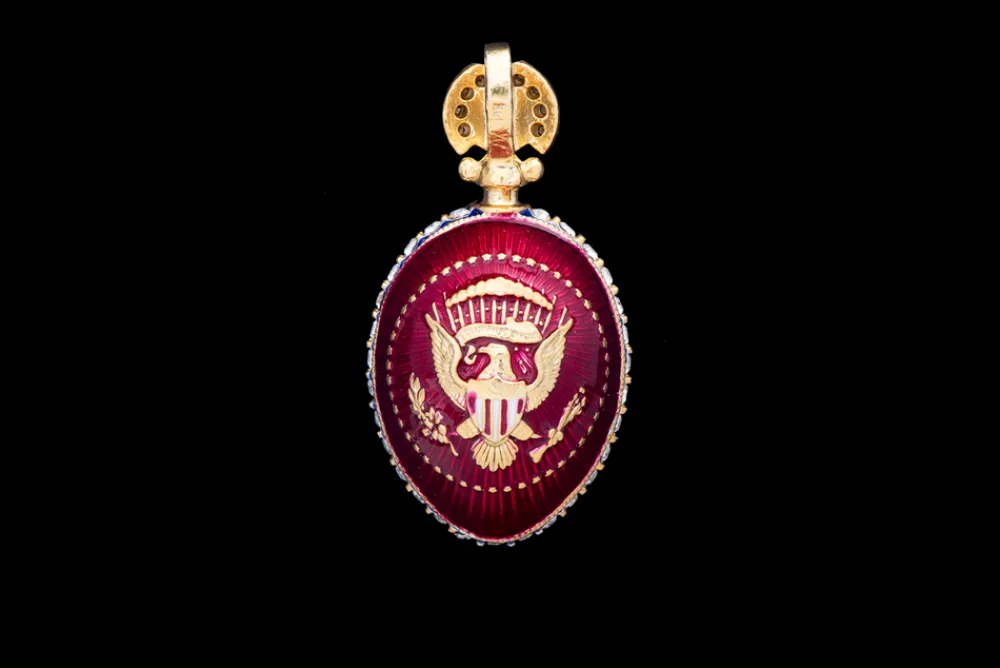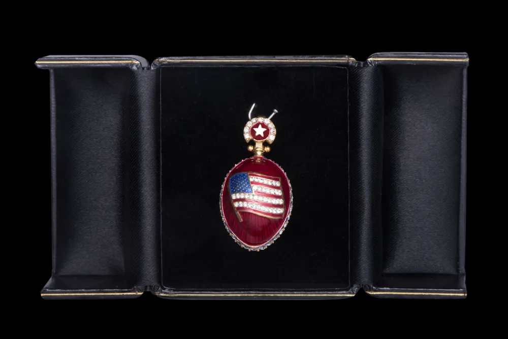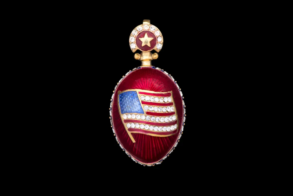 This patriotic egg pendant is carefully handcrafted by master jewelers.