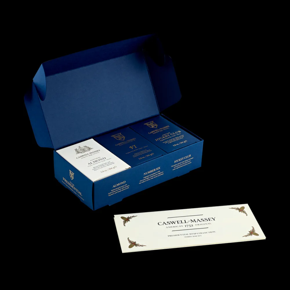 This Presidential Soap Collection includes a three famed fragrance bath soaps from Caswell-Massey.