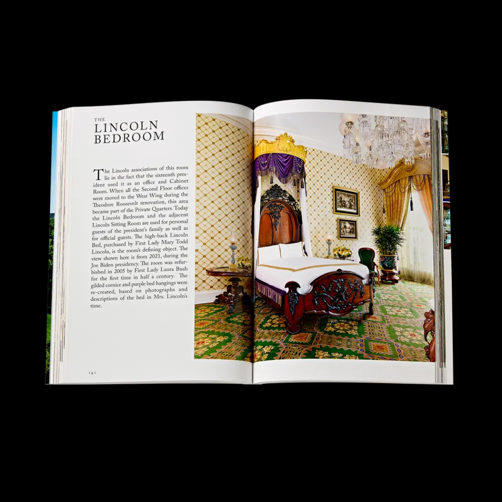 Among the rooms that are featured in the anniversary edition with the new photography and updated text are the State Rooms, the West Wing, the Queens’ Bedroom, Lincoln Bedroom, Center Hall, Yellow Oval Room, President’s Dining Room, West Sitting Hall, Oval Office, West Wing Reception Room, and the Roosevelt Room. There are photographs of never-before-seen features from within some of these rooms including: the Presidential Seal on the ceiling of the Oval Office, the Gettysburg Address displayed in situ in the Lincoln Bedroom, and President Theodore Roosevelt’s Nobel Prize Medal in the Roosevelt Room.