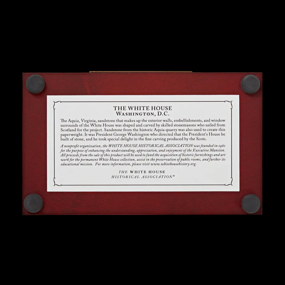 The Aquia, Virginia, sandstone that makes up the exterior walls, embellishments, and window surrounds of the White House was also used to create this paperweight.