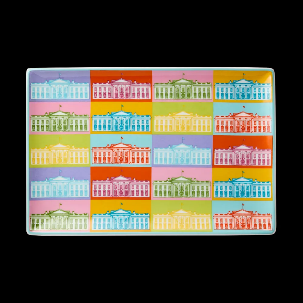 Add a pop of color to your home with this colorful tray featuring a Pop Art-inspired rendering of the White House North Front.